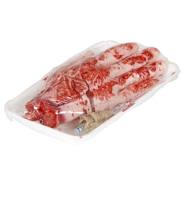 – Realistisk design. Der ligner en ægte afhugget hånd