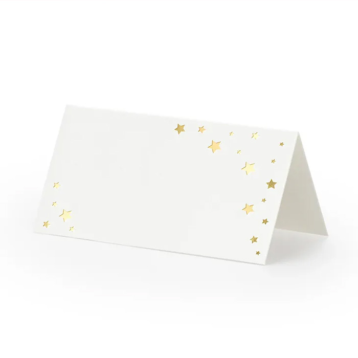 Perfekte til bryllupper. Fødselsdage og andre festlige begivenheder. Hver pakke indeholder 10 bordkort., Så du nemt kan placere dine gæster. De smukke guldstjerner skaber en indbydende stemning og byder alle velkommen. Vælg disse bordkort for, at gøre din fest mindeværdig. Uanset om det er en formel eller også uformel sammenkomst. Vil de fuldende din dekoration med stil. Gør dit event ekstra specielt med disse unikke bordkort