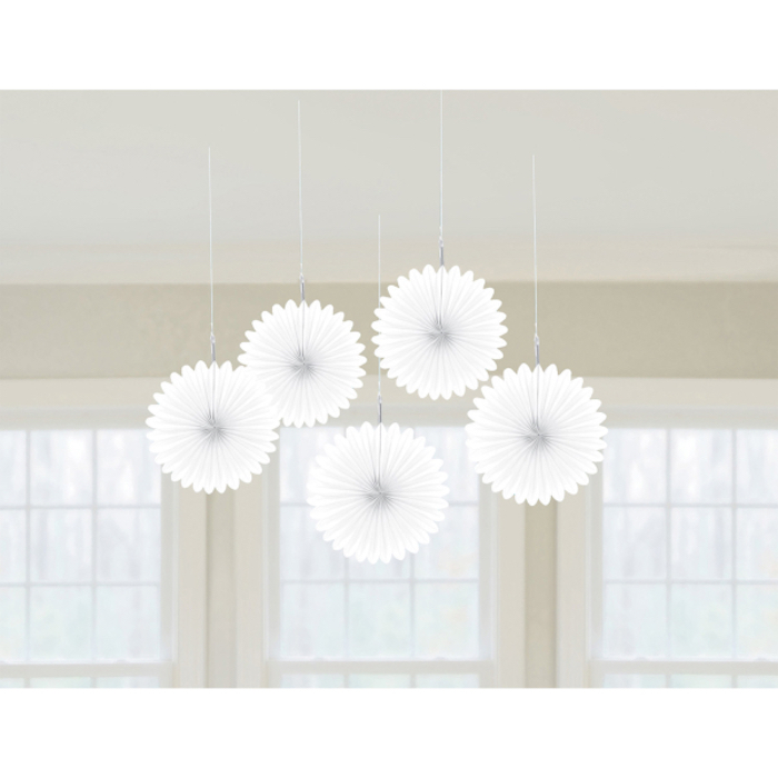 Hvide Rosetter 5 stk. Er et must-have til enhver festlig lejlighed. Disse stilfulde rosetter måler 15.2 cm i diameter og vil helt sikkert løfte stemningen til dit arrangement