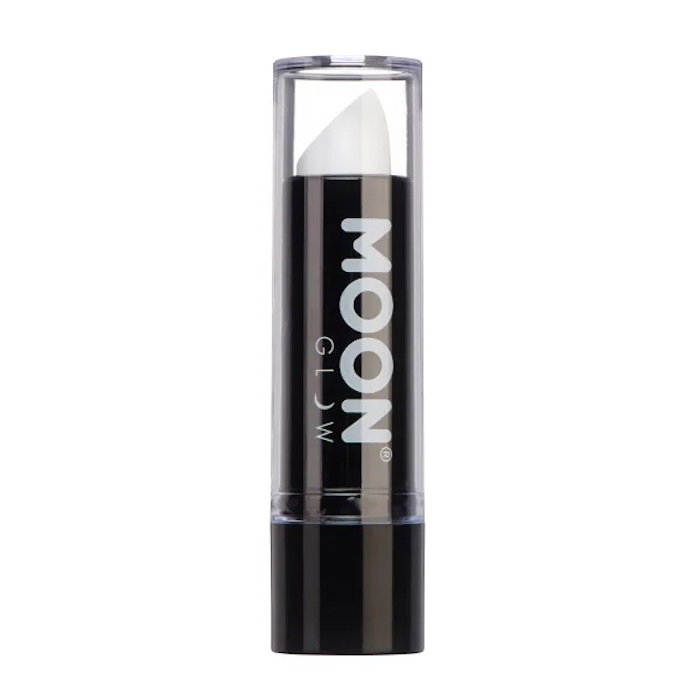 Neon UV Læbestift. Strålende Hvid er uundgåelig til enhver fest og festival. Denne læbestift fra Moon Creations lyser op under UV-lys. Hvilket gør dig til centrum for opmærksomheden.